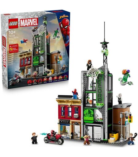LEGO Marvel Spider-Man contre Oscorp (76324) est un set de construction spectaculaire, pour jouer et exposer, recréant l'action des super-héros avec des personnages culte et des lieux célèbres. Ce décor urbain est un fabuleux cadeau pour les fans de super-héros et de Marvel dès 10 ans. La scène de rue inclut 3 bâtiments distincts : l'appartement de Miles Morales au-dessus d'une bijouterie, l'immeuble d'Oscorp et l'appartement de Venom au-dessus d'une épicerie. Chaque pièce est dotée du mobilier et des accessoires correspondants. 8 minifigurines LEGO des films Marvel donnent vie à l'action : Spider-Man, Spider-Woman, Miles Morales avec sa moto, Eddie Brock, Ghost-Spider, Norman Osborn, Kraven le chasseur et le Bouffon Vert avec son planeur. Des tiges transparentes permettent de positionner les personnages de façon réaliste. L'application LEGO Builder invite à construire en famille ou entre amis pour partager la joie de créer. Contient 808 pièces. - Kit de construction Spider-Man à collectionner pour enfants - Spider-Man contre Oscorp est un jouet de construction LEGO Marvel spectaculaire pour les garçons, les filles et les fans de super-héros à partir de 10 ans - Minifigurines de super-héros - Ce set de construction inclut 8 minifigurines LEGO : Spider-Man, Spider-Woman, Miles Morales, Eddie Brock, Ghost-Spider, Norman Osborn, Kraven le chasseur et le Bouffon vert - Scène urbaine composée de plusieurs modèles - L'action se déroule à l'intérieur et à l'extérieur de 3 bâtiments : l'appartement de Miles Morales au-dessus d'une bijouterie, l'immeuble d'Oscorp et l'appartement de Venom au-dessus d'une épicerie - Jeu de rôle réaliste - Ce jouet de construction inclut une moto, un planeur, des armes, des accessoires adaptés à chaque pièce et des tiges transparentes permettant de positionner les personnages de façon réaliste - Idée de cadeau pour les fans de Spider-Man - Ce set pour garçons et filles est un fabuleux cadeau modulable à offrir aux fans de super-héros, de jouets Marvel à collectionner et de modèles à construire et exposer - Construire ensemble, entre amis et en famille - L'application LEGO Builder offre une expérience amusante et collaborative permettant de partager le plaisir de la construction LEGO - Jouets à construire LEGO Marvel - La vaste gamme de sets LEGO Marvel offre aux enfants un univers sans cesse renouvelé d'aventures de construction et de jeux créatifs avec des super-héros - Set de construction de 808 pièces - Une fois assemblée, la scène de rue mesure plus de 46 cm de haut, 38 cm de large et 11 cm de profondeur ...