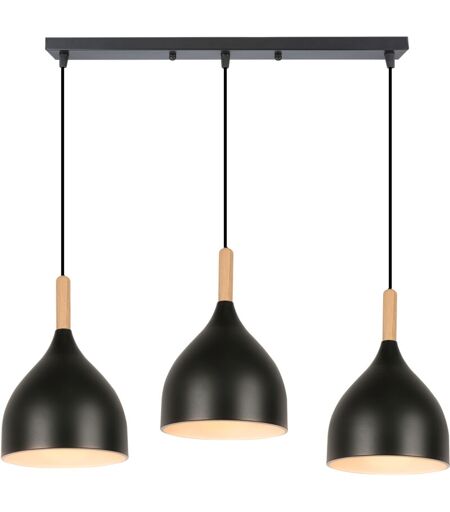 WOTTES Suspension Luminaire de Salon Lustre en Bois Métal Lampe Plafonnier Industriel pour Chambre Cuisine Noir
