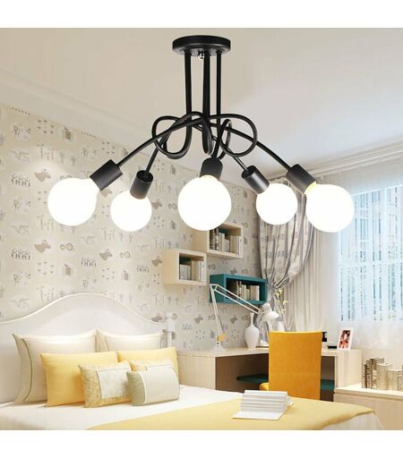 WOTTES Plafonnier Lustre Vintage led Lampe de Plafond Luminaire Eclairage Décor pour Salon Chambre (5 Tête Noir) - 5 Bras, Fet
