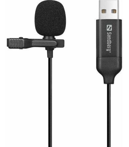 Sandberg Microphone à pince usb pour streamer, micro-cravate Lavalier omnidirectionnel pour ordinateur portable, usb-a, Plug & Play, pour les réunions en