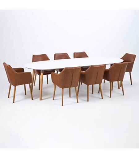 Adoptez la SVEN attitude avec des meubles venus des pays scandinaves ! Une table ovale extensible pour 12 personnes Les meubles de la collection SVEN revendiquent leur origine nordique. On retrouve le design rigoureux d'un meuble bien conçu aux lignes épurées. Le plateau de la table extensible Sven s'agrandit pour accueillir jusqu'à douze convives et mesurer ainsi 270 centimètres ! Description technique : Dimensions : L 170/270 x P 100 x H 74 cm • Longueur de la table ovale sans allonge : 170 cm • Longueur avec les 2 allonges : 270 cm • Dimensions des allonges : 50 cm • Hauteur des pieds : 72,5 cm Sans rallonge (170 cm), l'espace entre les pieds en bas est 125,5 cm et en haut 103,5 cm. Avec rallonge (270 cm), l'espace entre les pieds en bas est 225,5 cm et en haut 203,5 cm. • Plateau MDF recouvert d'une laque blanche du plus bel effet, demandant des précautions à l'usage • Piétement en hévéa finition chêne Livré en 2 colis : Carton 1 : L 178 x P 109 x H 16 cm, 55 Kg Carton 2 : L 28,5 ...