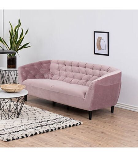 Hellin - Canapé 3 places 191x84x78 cm en velours rose clair - salma