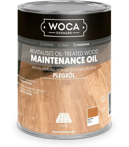 Maintenance Oil de Woca, Est une huile d'entretien pour parquets bois huilés Donne un coup de neuf à vos parquets huilés facilement, redonne de l'éclat et ravive l'aspect du bois. Certification climat intérieur pour un environnement plus sain chez vous. Application avec un tampon, un pad ou un rouleau pour peinture poils courts Rendement : environ 40m² / litre Conditionnement : 1 Litre Teinte : Naturel ...