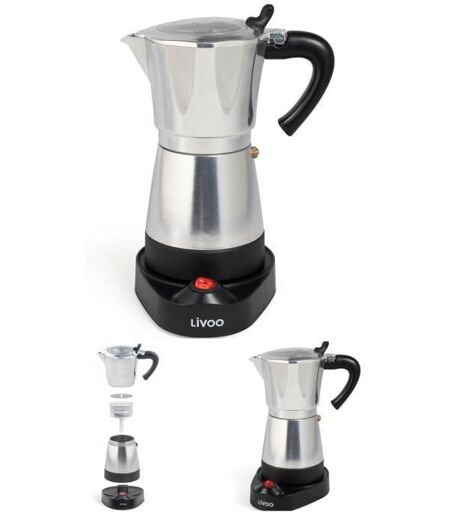 Livoo Cafetière Italienne Électrique Grise Inox 6 Tasses Socle Pivotant À 360° Témoin Lumineux