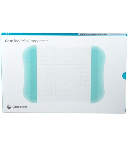 Taille du pansement: 15 x 20 cm Indications: Les pansements hydrocolloïdes Comfeel® Plus Transparent sont indiqués pour différents types de plaies, de non exsudatives à faiblement exsudatives. Les pansements sont indiqués pour les plaies chroniques telles que les ulcères de jambe et les escarres ; et pour les plaies aiguës, telles que les brûlures superficielles, les brûlures du second degré, les sites donneurs de greffe, les plaies post-opératoires et les dermabrasions. Le pansement peut être laissé en place jusqu’à 7 jours en fonction des caractéristiques spécifiques de la plaie. Comfeel® Plus Transparent peut être utilisé comme pansement primaire et/ou secondaire. Description du produit: Protection assurée. Cicatrisation accélérée.* Pansements hydrocolloïdes pour cicatrisation en milieu humide. Comfeel® Plus Transparent offre les avantages de la cicatrisation en milieu humide et assure la protection des plaies et de la peau environnante. *Comparé aux pansements classiques Protection assurée Les pansements hydrocolloïdes Comfeel® Plus Transparent offrent une cicatrisation en milieu humide et contribuent à protéger la plaie dans les étapes finales de la guérison. Le film supérieur est imperméable à l'eau et aux bactéries, contribuant ainsi à protéger la plaie des agressions extérieures, et lisse pour réduire la friction. Le film supérieur semi-perméable permet l'évaporation de l'humidité tout en maintenant un environnement de cicatrisation humide. Surveillance de la plaie Les pansements hydrocolloïdes Comfeel® Plus Transparent comportent un quadrillage pour la surveillance de la plaie et l'indication des changements. La transparence vous permet d'inspecter la plaie sans retirer pansement. La réduction de la fréquence de changement des pansements et une moindre perturbation de la plaie permettent d’accélérer la cicatrisation. Design convivial Les pansements hydrocolloïdes Comfeel® Plus Transparent disposent d'un système d'application « non-touch » en 3 parties qui permet une application aseptique et contrôlée. Les points de toucher turquoise guident la procédure de soins. L'emballage présente des photos grandeur nature des pansements pour faciliter la sélection du produit et les sachets comportent des illustrations mode d'emploi pour un guidage optimal. Mode d’action Au contact des exsudats, le pansement forme un gel visqueux qui absorbe l’exsudat sans adhérer au lit de la plaie (1). L'excès d'humidité s'évapore à travers le film supérieur semi-perméable. Conseils d'utilisation: Assurez-vous que la peau est complètement sèche avant d’appliquer le produit. Composition: Comfeel® Plus Transparent se compose de particules de carboxyméthylcellulose (CMC) sodique absorbant l’humidité, encapsulées dans une matrice synthétique et élastique. Le film supérieur est un film en polyuréthane semi-perméable. La formule de Comfeel® Plus Transparent ne contient pas de pectine, aucun allergène connu comme le latex ou la colophane, ni de dérivés d'animaux comme la... ...