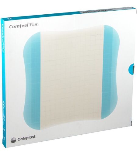 Taille du pansement: 20 cm x 20 cm Indication:Les pansements hydrocolloïdes Comfeel® Plus sont indiqués pour différents types de plaies, de faiblement exsudatives à moyennement exsudatives. Les pansements sont indiqués pour les plaies chroniques telles que les ulcères de jambe et les escarres ; et pour les plaies aiguës, telles que les brûlures superficielles, les brûlures du second degré, les sites donneurs de greffe, les plaies post-opératoires et les dermabrasions. Le pansement peut être laissé en place jusqu’à 7 jours en fonction des caractéristiques spécifiques de la plaie. Comfeel Plus peut être utilisé comme pansement primaire et/ou secondaire.Description du produit: Protection assurée. Cicatrisation accélérée.* Pansements hydrocolloïdes pour cicatrisation en milieu humide. Comfeel® Plus offre les avantages de la cicatrisation en milieu humide et assure la protection des plaies et de la peau environnante.*Comparé aux pansements classiquesProtection assuréeLes pansements hydrocolloïdes Comfeel® Plus offrent un environnement de cicatrisation humide et contribuent à protéger la plaie dans les étapes finales de la guérison. Le film supérieur est imperméable à l'eau et aux bactéries, contribuant ainsi à protéger la plaie des agressions extérieures, et lisse pour réduire la friction. Le film supérieur semi-perméable permet l'évaporation de l'humidité tout en maintenant un environnement de cicatrisation humide.Surveillance de la plaieLes pansements hydrocolloïdes Comfeel® Plus comportent un quadrillage pour le suivi de la plaie et l'indication des changements.Design convivialLes pansements hydrocolloïdes Comfeel® Plus disposent d'un système d'application « non-touch » en 3 parties qui permet une application aseptique et contrôlée. Les points de toucher turquoise guident la procédure de soins. L'emballage présente des photos grandeur nature des pansements pour faciliter la sélection du produit et les sachets comportent des illustrations mode d'emploi pour un guidage optimal.Mode d’actionAu contact des exsudats, le pansement forme un gel visqueux qui absorbe l’exsudat sans adhérer au lit de la plaie (1). L'excès d'humidité s'évapore à travers le film supérieur semi-perméableConseils d'utilisation:Nettoyer et désinfecter la blessure avant d'appliquer le pansement.CompositionComfeel® Plus est constitué de particules de carboxyméthylcellulose (CMC) de sodium absorbeur d'humidité, retenues dans une masse synthétique, élastique et collante. De l’alginate de calcium a été ajouté au pansement pour augmenter l’absorption. Le film supérieur est un film en polyuréthane semi-perméable.La formule de Comfeel® Plus Transparent ne contient pas de pectine, aucun allergène connu comme le latex ou la colophane, ni de dérivés d'animaux comme la gélatine.Conditionnement Boîte de 5 pansements ...