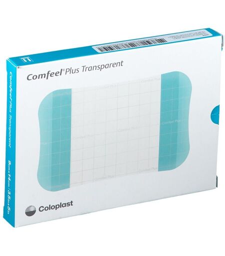 Taille du pansement: 9 x 14 cm Indications: Les pansements hydrocolloïdes Comfeel® Plus Transparent sont indiqués pour différents types de plaies, de non exsudatives à faiblement exsudatives. Les pansements sont indiqués pour les plaies chroniques telles que les ulcères de jambe et les escarres ; et pour les plaies aiguës, telles que les brûlures superficielles, les brûlures du second degré, les sites donneurs de greffe, les plaies post-opératoires et les dermabrasions. Le pansement peut être laissé en place jusqu’à 7 jours en fonction des caractéristiques spécifiques de la plaie. Comfeel® Plus Transparent peut être utilisé comme pansement primaire et/ou secondaire. Description du produit: Protection assurée. Cicatrisation accélérée.* Pansements hydrocolloïdes pour cicatrisation en milieu humide. Comfeel® Plus Transparent offre les avantages de la cicatrisation en milieu humide et assure la protection des plaies et de la peau environnante. *Comparé aux pansements classiques Protection assurée Les pansements hydrocolloïdes Comfeel® Plus Transparent offrent une cicatrisation en milieu humide et contribuent à protéger la plaie dans les étapes finales de la guérison. Le film supérieur est imperméable à l'eau et aux bactéries, contribuant ainsi à protéger la plaie des agressions extérieures, et lisse pour réduire la friction. Le film supérieur semi-perméable permet l'évaporation de l'humidité tout en maintenant un environnement de cicatrisation humide. Surveillance de la plaie Les pansements hydrocolloïdes Comfeel® Plus Transparent comportent un quadrillage pour la surveillance de la plaie et l'indication des changements. La transparence vous permet d'inspecter la plaie sans retirer pansement. La réduction de la fréquence de changement des pansements et une moindre perturbation de la plaie permettent d’accélérer la cicatrisation. Design convivial Les pansements hydrocolloïdes Comfeel® Plus Transparent disposent d'un système d'application « non-touch » en 3 parties qui permet une application aseptique et contrôlée. Les points de toucher turquoise guident la procédure de soins. L'emballage présente des photos grandeur nature des pansements pour faciliter la sélection du produit et les sachets comportent des illustrations mode d'emploi pour un guidage optimal. Mode d’action Au contact des exsudats, le pansement forme un gel visqueux qui absorbe l’exsudat sans adhérer au lit de la plaie (1). L'excès d'humidité s'évapore à travers le film supérieur semi-perméable. Conseils d'utilisation: Assurez-vous que la peau est complètement sèche avant d’appliquer le produit. Composition: Comfeel® Plus Transparent se compose de particules de carboxyméthylcellulose (CMC) sodique absorbant l’humidité, encapsulées dans une matrice synthétique et élastique. Le film supérieur est un film en polyuréthane semi-perméable. La formule de Comfeel® Plus Transparent ne contient pas de pectine, aucun allergène connu comme le latex ou la colophane, ni de dérivés d'animaux comme la... ...