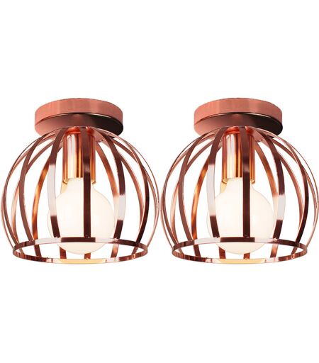 AXHUP Lampe de Plafond Industrielle E27 Plafonnier Lustre Suspension Luminaire Metal Or Rose 2PCS