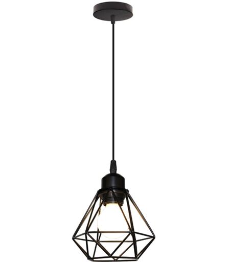 AXHUP Diamant Lustre Suspension Industrielle 16CM Fer Abat-jour Cage en Métal Plafonnier Luminaire Noir pour Couloir Salon Escalier