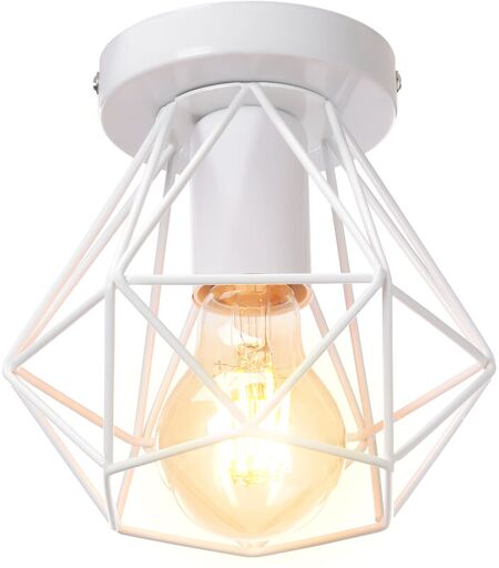 AXHUP Plafonnier Industriel Cage Métal Forme Diamant Lustre Suspension Luminaire Salon Couloir Blanc