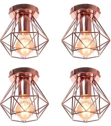 AXHUP Lot de 4 Diamant Plafonnier Industrielle Cage Diamant E27 Lustre Suspension Luminaire de Plafond en Métal Doré Rose