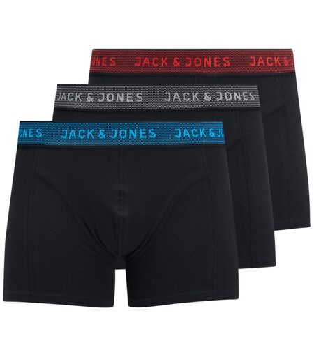 Lot de 3 Boxers Jack & Jones - 95% Coton, 5% Élasthanne - Noir - 1 modèle noir uni avec ceinture rouge avec nom de la marque imprimé dessus ...