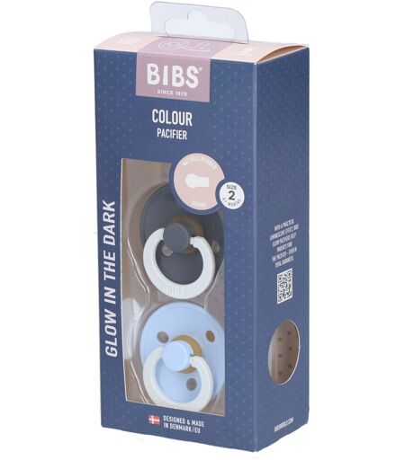 BIBS Duo de Sucettes Glow Iron/Baby Blue 6-18 mois Tétine(S) 2 pc(s)