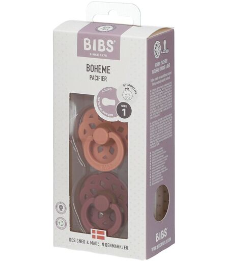 BIBS Boheme - Une profonde appréciation de la nature Un nouveau classique Avec sa silhouette romantique et artistique, BIBS Boheme s’inspire du style bohème moderne avec une profonde appréciation pour la nature. Le style bohème combine des éléments naturels tels que le bois, le rotin et le macramé avec des motifs artistiques, audacieux et organiques, ce qui rend ce nouveau design frais, créatif et super mignon. Design et couleurs Avec ses éléments naturels et sa silhouette organique, Boheme apparaît dans un design frais, créatif et esthétique. Embout de la sucette Le mamelon rond en latex de caoutchouc naturel est conçu pour ressembler à la forme et à la taille du mamelon souple de la mère et favorise une technique similaire de mise en place et de succion de la langue lors de l’allaitement. Recommandé par les sages-femmes pour favoriser l’allaitement naturel. Bénéfices Recommandé par les sages-femmes pour favoriser l'allaitement naturel. Recommandé pour les enfants âgés de 0 à 6 mois. Disponible en taille 1, 2 et 3. Les tailles 1 et 2 sont adaptées aux nouveau-nés. Le mamelon est fabriqué en latex de caoutchouc naturel. Le caoutchouc est un matériau naturel et de légères variations de couleur peuvent donc se produire. Le bouclier est fabriqué en polypropylène (PP) 100 % alimentaire. Il est totalement exempt de BPA, PVC et phtalates. Egalement disponible en version de nuit avec une poignée phosphorescente. Conçu et fabriqué au Danemark/UE. Conforme à la norme européenne EN 1400+A2. Indications Pour bébés de 0 à 6 mois Conseils d'utilisation Avant première utilisation, poser la tétine pendant au moins 5 minutes dans de l'eau bouillante. Remplacez la tétine au bout de 4 semaines d’utilisation pour des raisons de sécurité et d’hygiène. Ne laissez jamais un enfant utiliser ce produit sans surveillance. Conservez la tétine dans un récipient sec et fermé. Conditionnement 2 tétines ...