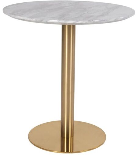 M&s - Table à manger ronde piza – Effet marbre blanc et pied laiton doré-Diamètre 70 cm