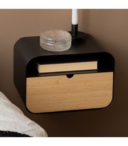 Hellin - Chevet mural 1 tiroir 35x25x23 cm décor chêne