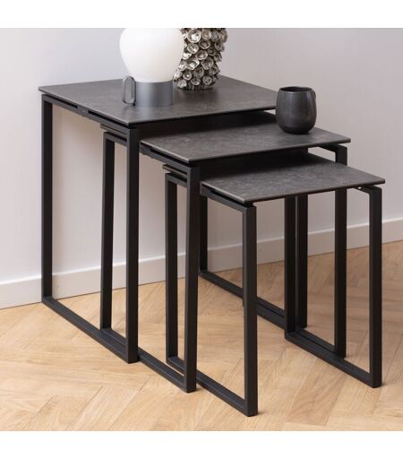 Hellin - Lot de 3 tables gigognes en céramique et métal noir - odelya