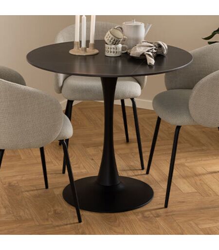 Hellin - Table à manger ronde 90x90x75 cm en céramique noire - mirra