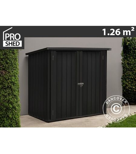 Spécifications produit Largeur: 1,47 m. Longueur: 0,86 m. Hauteur des côtés: 1,22 m. Hauteur sous faitiére: 1,34 m. Porte: 1,18x1,27 m. Matériel: Acier galvanisé Étanche: 100% Étanche Dimensions extérieures: 1,41x0,76 m. Panneaux de toit: 0,25 mm. Panneaux de côtés: 0,25 mm. Couleur: Anthracite Panneaux en acier galvanisé Portes doubles à charnières Taille de la porte 1,18x1,27 m Verrouillable — cadenas non compris ! Beaucoup de rangement dans un espace limité Placez-le à l’intérieur et à l’extérieur Mesure extérieure (y compris les avant-toits) 1,26 m² Dimensions extérieures au sol : 1,41x0,76 m Surface au sol 1,07 m² Armoire métallique robuste et moderne ou abri de jardin avec une double porte verrouillable. L’armoire est conçue avec des panneaux élégants et durables et elle contient tout ce qu’il faut pour ranger de manière organisée. Utilisez-la au bureau, dans le garage, sur la terrasse ou partout où vous avez besoin d’un espace de rangement compact. Placez l’armoire métallique ...