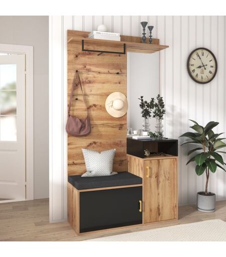 URBAN MEUBLE Vestiaire à l'entrée avec miroir, banc et meuble à chaussures, porte-manteau mural NAKS