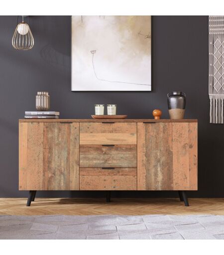 Urban Meuble - Buffet effet bois vieilli avec étagères réglables 2 portes 3 tiroirs grancuk