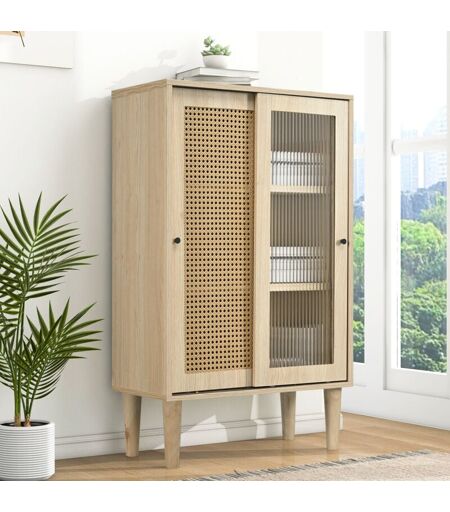 Urban Meuble - Buffet effet bois avec portes en rotin portes coulissantes en verre bamphuds