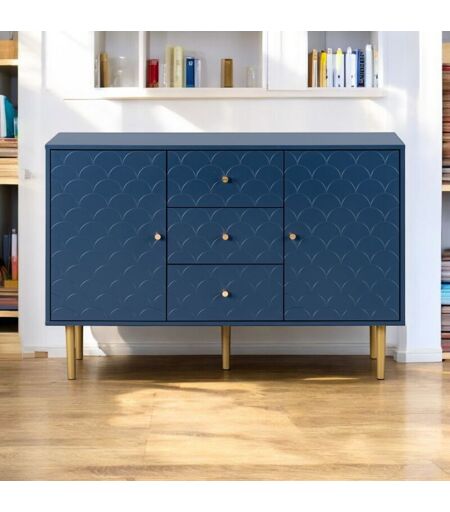 Urban Meuble - Classeur de bureau bleu marine avec 2 portes et 3 tiroirs 120x40x82cm