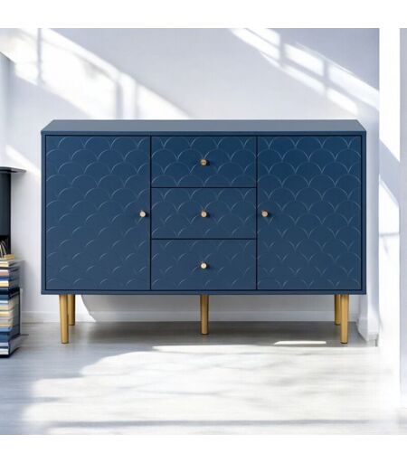 Urban Meuble - Armoire de rangement de bureau bleu marine avec 2 portes et 3 tiroirs 120x40x82cm