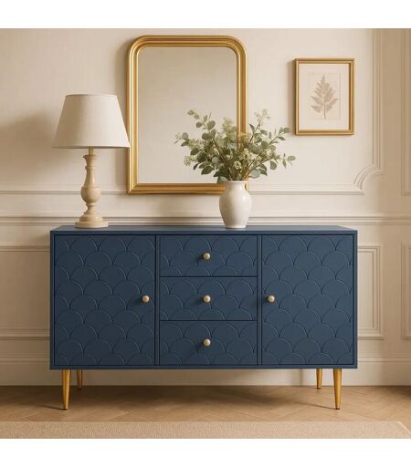 Urban Meuble - Commode bleu marine avec 2 portes et 3 tiroirs 120x40x82cm