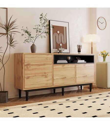 URBAN MEUBLE Buffet moderne en bois avec 3 portes 1 niche et étagères 160x35x76cm OMHAT