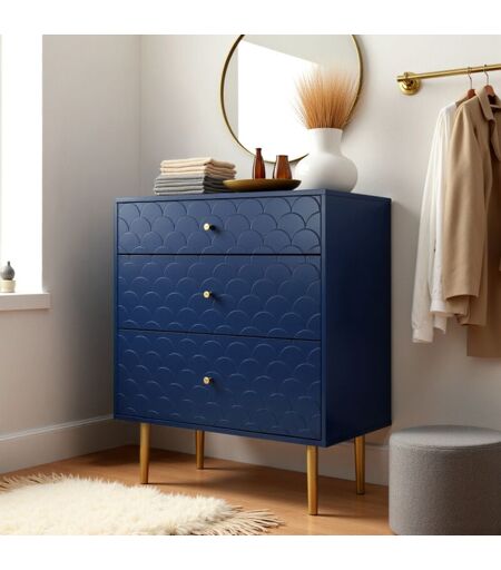 Urban Meuble - Armoire penderie 3 tiroirs bleu marine avec pieds dorés 75x40x89cm