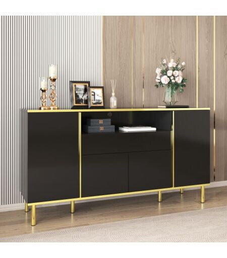 Urban Meuble - Buffet noir brillant avec accents dorés et éclairage led 150x40x80cm