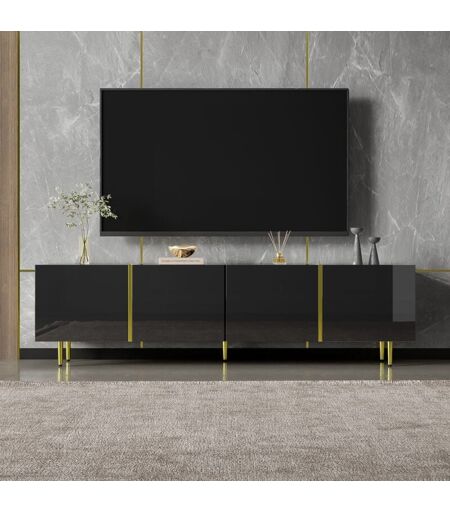 Urban Meuble - Meuble tv noir laqué 4 portes avec accents dorés 170x35x46cm