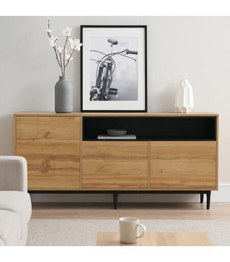 URBAN MEUBLE Commode moderne en bois avec 3 tiroirs 1 niche ouverte 160x35x76 cm