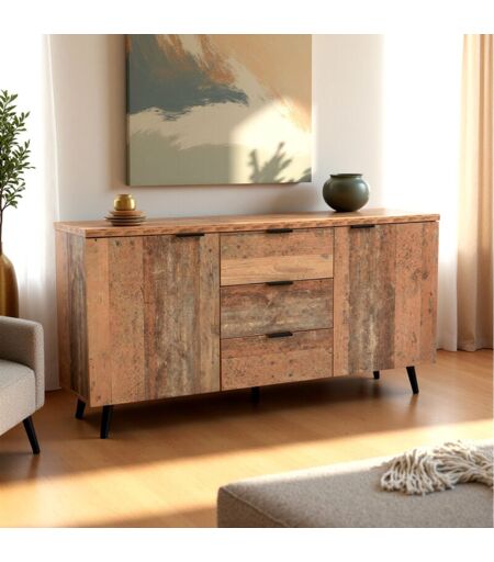 Urban Meuble - Vitrine de rangement effet bois vieilli avec 2 portes 3 tiroirs et étagères réglables