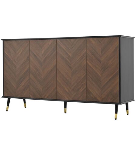 URBAN MEUBLE Buffet vintage effet bois et noir motif chevrons 4 portes pieds dorés CEDARFIELD
