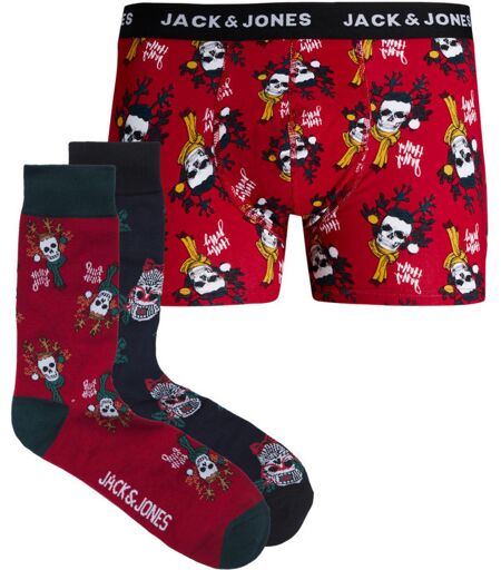 Boxer Jack & Jones - 95% Coton, 5% Élasthanne - Rouge - Lot de 2 paires de chaussettes et 1 boxer ...