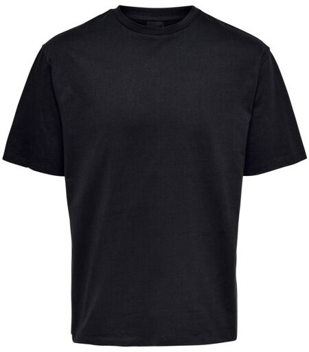 T-shirt Only&Sons; - 100% Coton - Noir - Coupe droite - Manches courtes - Col rond - Col en bord côte ...