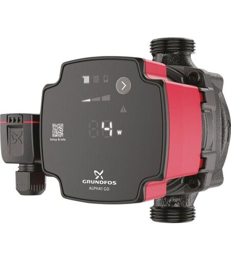 Circulateur haut rendement pour chauffage, climatisation et eau chaude sanitaire Raccords union MM 1' (DN 15) et entraxe 130 mm pour installation compacte Hauteur manométrique maximale 8 m - Débit jusqu'à 4,5 m³/h 3 modes de régulation intelligents - pression constante, pression proportionnelle, courbe fixe Câblage électrique rapide sans outil grâce à la fiche Grundfos Compatible avec l'application Grundfos GO pour réglage et duplication des courbes Protection marche à sec et auto-ventilation intégrée Démarrage robuste évitant les blocages liés au calcaire et à la magnétite ...