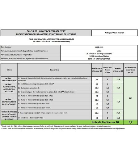 nilfisk - nettoyeur haute pression 130 bars - core130-6