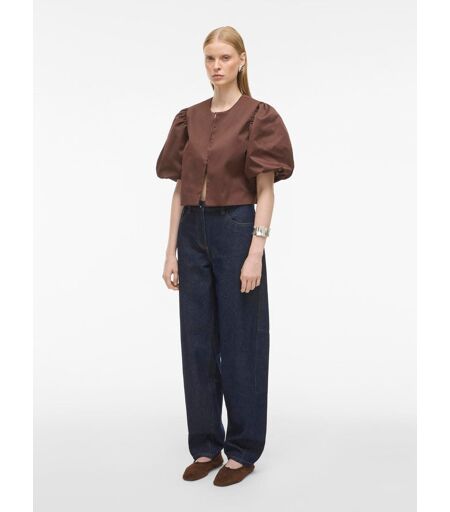 Rouge Edit Blazer Rouge Edit Satin à manches bouffantes Marron