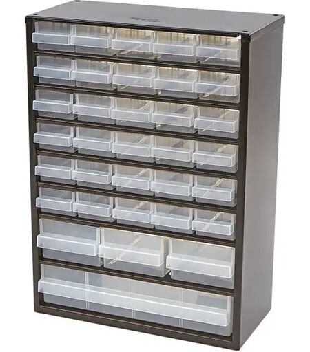 Commode en métal à 34 tiroirs Raaco avec 10 séparateurs