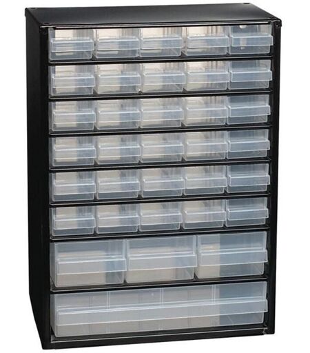 raaco Casier de rangement pour petites pièces l306xP150xH420mm tôle d'acier 34 tiroirs en polypropylène noir/transparent