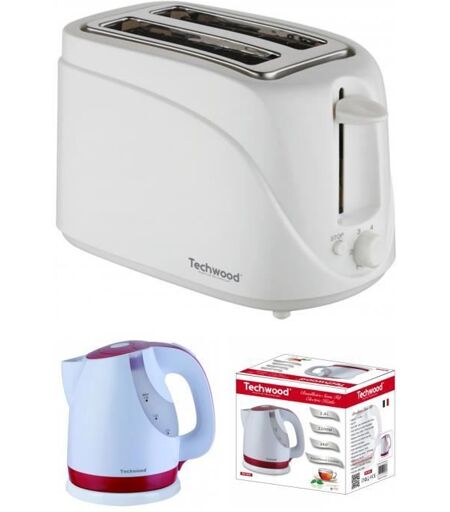 Techwood Bouilloire électrique Blanche Rouge 1L6 2200W + Grille-pain Blanc 2 Fentes 700W
