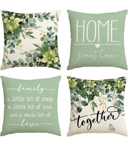 Cauc-Home Sweet Home - Lot De 4 Housses De Coussin D'été - Motif Fleurs D'eucalyptus - 45 X 45 Cm - Décoration Pour Canapé
