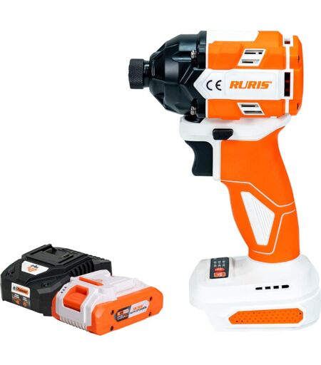 RURIS Visseuse à chocs sans fil RMX2300 230 Nm, moteur sans balais, 3300 tr/min, 20V, avec batterie 4Ah + chargeur, LED, 1/4" hex, pour vis M8-M18