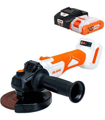 RURIS Meuleuse d’Angle Sans Fil RMX4125 125 mm Moteur Sans Balais, 2 Vitesses, 8500 tr/min, Disque de Ponçage Inclus Kit avec Batterie 20V 4Ah +