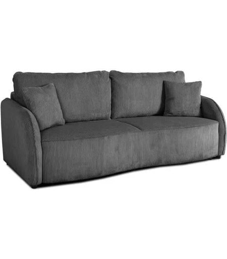 Canapé Convertible 3 Places - Bari - Velours Cotelé - Anthracite - Coffre De Rangement - 215 X 89 X 100 Cm
