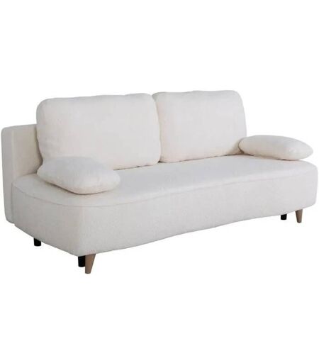 Canapé Converible - 3 Places - Pyla - Bouclette Blanche - Coffre - 203 X 95 X 89 Cm