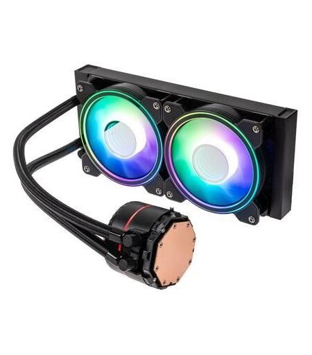 Boostez votre refroidissement et l'esthétique de votre PC avec le Kolink Umbra Void AIO Performance CPU Cooler. Conçu pour fonctionner sur les plateformes AMD et Intel, ce système de refroidissement liquide AIO comprend une puissante pompe, des matériaux haut de gamme et des ventilateurs Kolink Umbra Void SP ARGB PWM. Ensemble, ces composants permettent une évacuation rapide de la chaleur du processeur tout en apportant un éclairage avec effet miroir infini pour illuminer votre PC gaming. Kolink Umbra Void 240 AIO Performance CPU Cooler en un coup d'oeil : Refroidissement processeur AIO conçu pour fonctionner sur les sockets AMD et Intel Ventilateurs Kolink Umbra Void SP 120mm ARGB PWM préinstallés avec mode Zero RPM Radiateur en aluminium à haute densité d'ailettes et finition noire Tuyaux en caoutchouc flexibles avec une gaine tressée Eclairage avec effet miroir infini sur les ventilateurs et la pompe Garantie de trois ans Qualité supérieure Pour optimiser les performances, le Kolink Umbra Void AIO Performance ARGB est conçu avec des matériaux haut de gamme. Le radiateur est entièrement en aluminium avec des ailettes à haute densité, le tout avec une superbe finition en noir. S'y associe une base en cuivre et une pâte thermique à 13.4 W/mk pour aider au transfert et à l'évacuation de la chaleur. Les tuyaux sont flexibles et faits en caoutchouc dense avec une gaine tressée. Ils peuvent être courbés à votre guise pour satisfaire les besoins de votre PC gaming tout en étant durables. De plus, le roulement de la pompe et l'arbre sont construits en céramique pour de grandes performances avec une haute efficacité. Cette pompe peut fonctionner jusqu'à 2600 RPM. Ventilateur Kolink Umbra Void Ce système de refroidissement processeur AIO est livré avec des ventilateurs Kolink Umbra Void SP 120 mm PWM ARGB. Ces ventilateurs à haute performance proposent un débit d'air maximal de 110.78 m³/h (65.2 CFM) avec une pression statique de 3.9 mmH2O. De plus, en tant que ventilateurs PWM, leur vitesse de rotation varie ¿ avec un mode Zéro RPM ¿ en fonction de la charge du processeur. Aussi éblouissants qu'ils sont performances, ces ventilateurs disposent d'un éclairage ARGB sur le cadre et au centre. Les diodes sur le tour illuminent les pales du ventilateur, tandis que le centre reprend l'iconique effet miroir infini. Pour aller avec, le couvercle de la pompe du Kolink Umbra Void AIO proposent le même effet miroir. Ce couvercle peut pivoter à 360 ° pour une installation facile. L'éclairage se connecteur au port 5 V de la carte mère et peut être contrôlé par un logiciel compatible. Gamme Umbra Void AIO Il y a trois modèles dans la gamme Kolink Umbra Void AIO. Celui-ci est avec un radiateur de 240 mm et comprend deux ventilateurs ARGB, idéal pour installé n'importe où dans le boitier. Avec une compatibilité maximale, le Kolink Umbra Void AIO Performance ARGB peut-être installé sur des sockets AMD et Intel. La liste des compatibilités est la suivante : AMD : AM5 /... ...